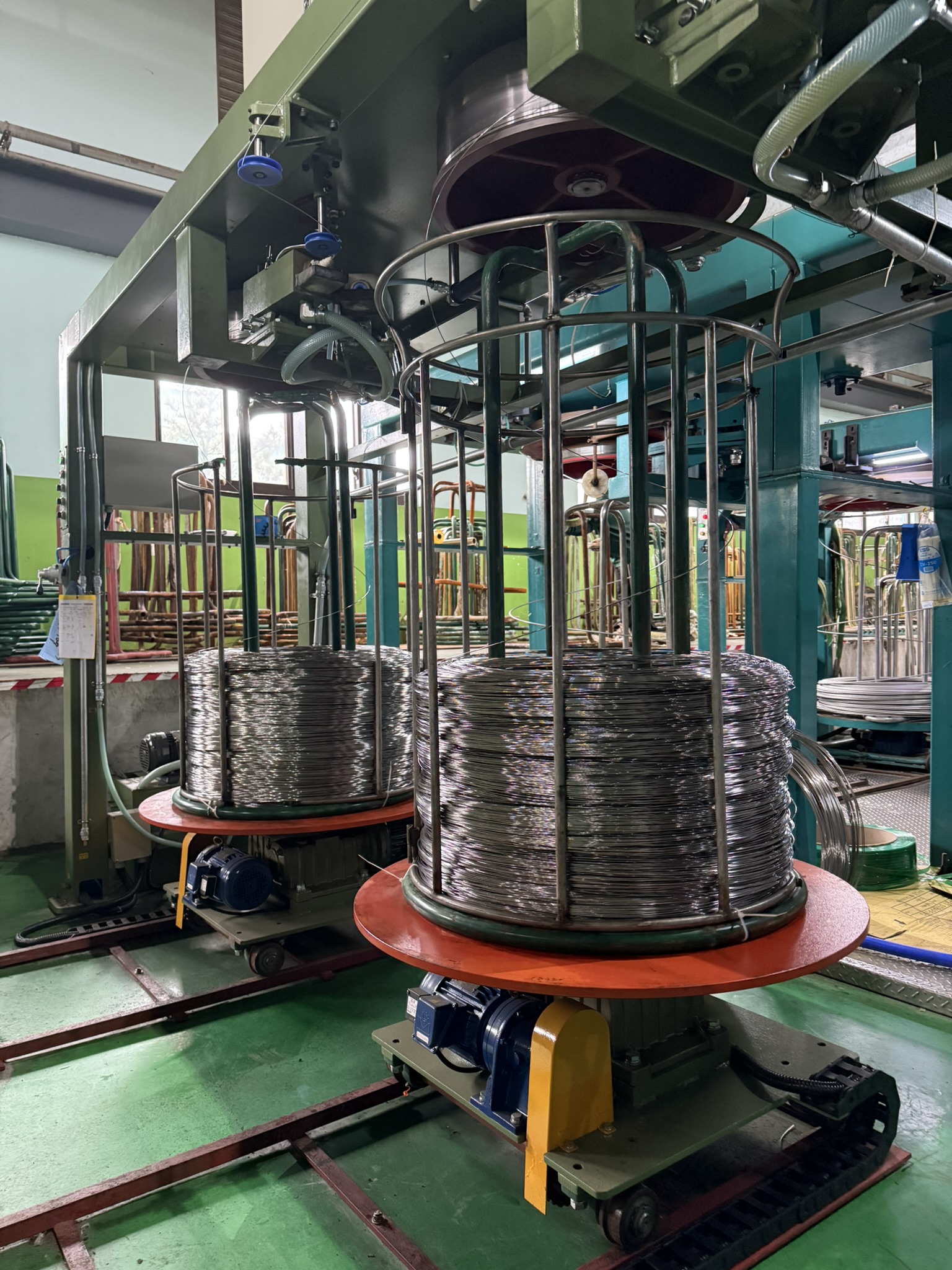 •完成表面處理並烘乾後的盤元進入一系列抽製程序直到所需之線徑大小
